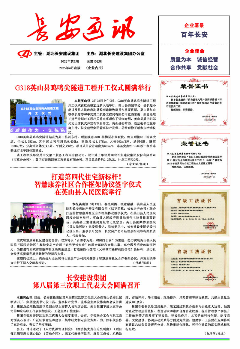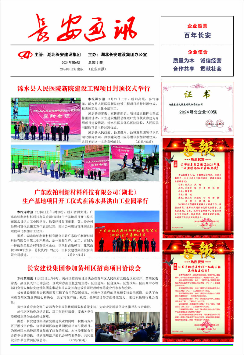• 2025-09-27 湖北長安建設集團股份有限公司 榮獲2025湖北民營企業100強稱號,位列第35名